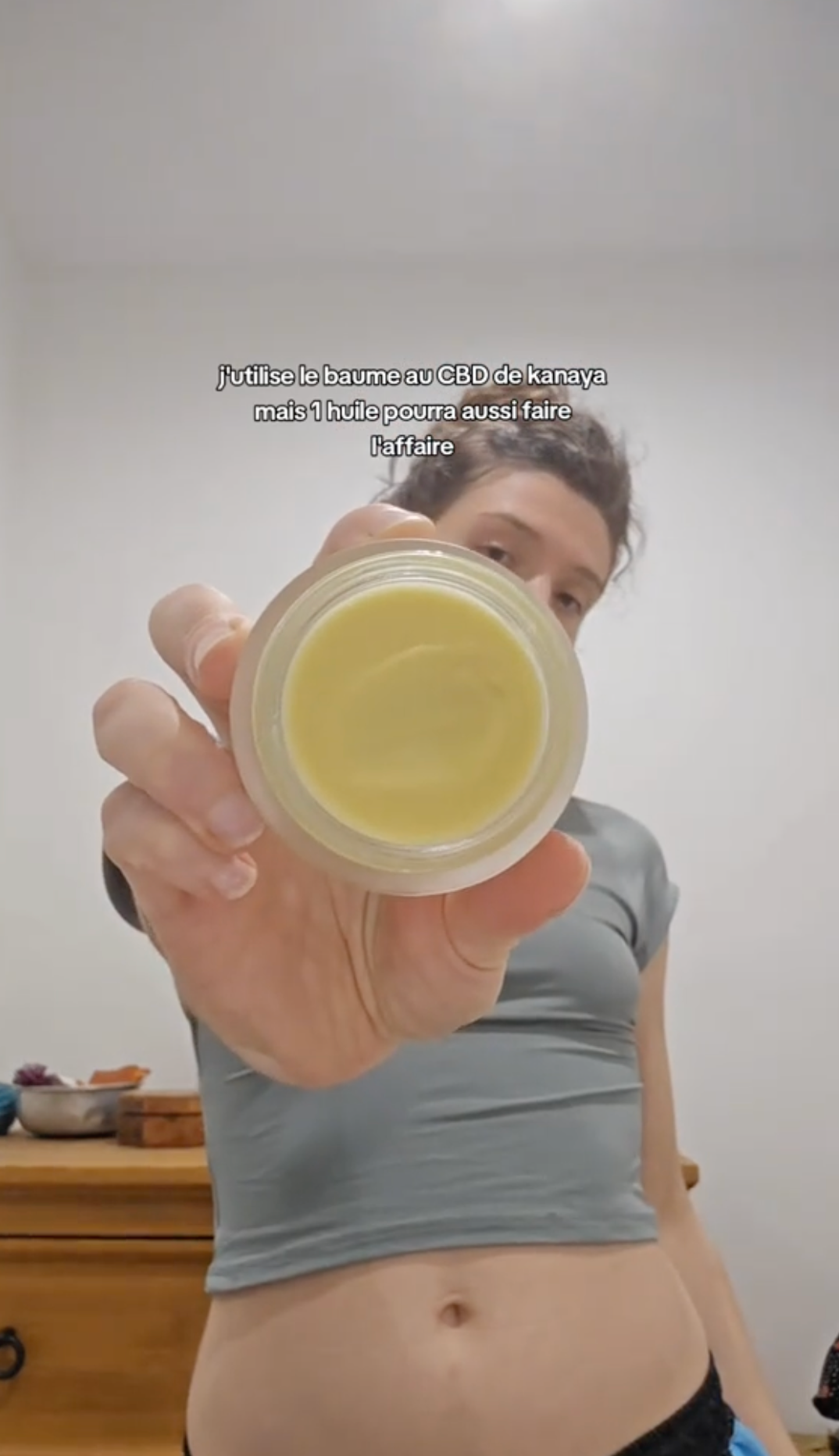 Le baume contient des ingrédients nourrissants et apaisants : CBD, beurre de karité, huiles végétales (chanvre, kukui, tamanu, olive)